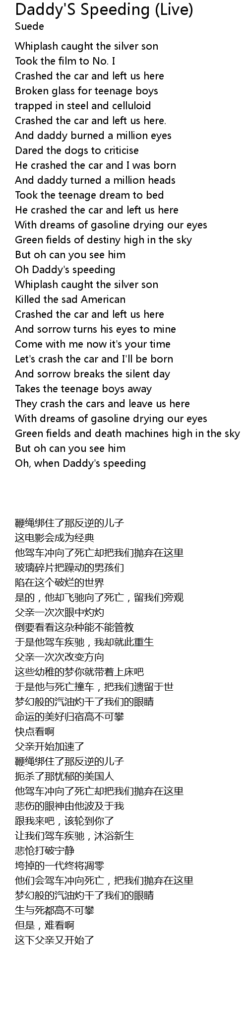 Oh, when Daddy's speeding |