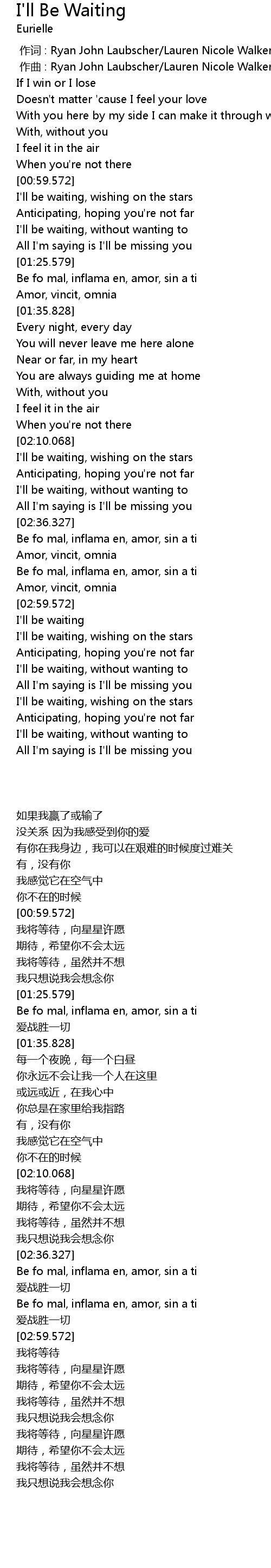 | [03:05.574] | I'll be waiting, wishing on the stars |