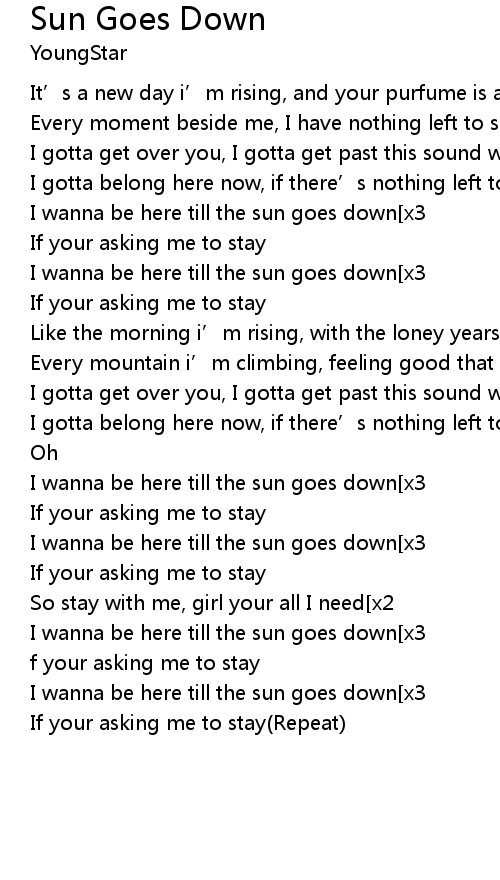 | [00:55.07]I wanna be here till the sun goes down[x3] | |