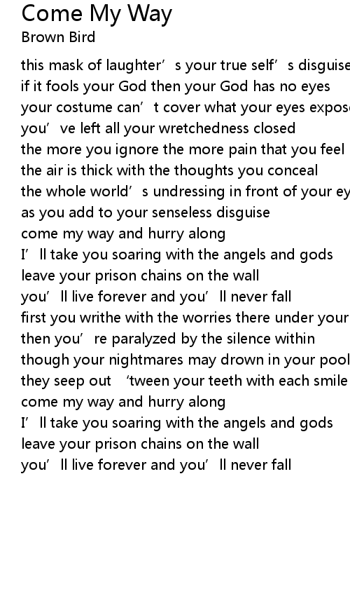 | come my way and hurry along | |