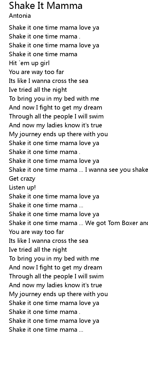 | Shake it one time mama ... I wanna see you shake that ass | |