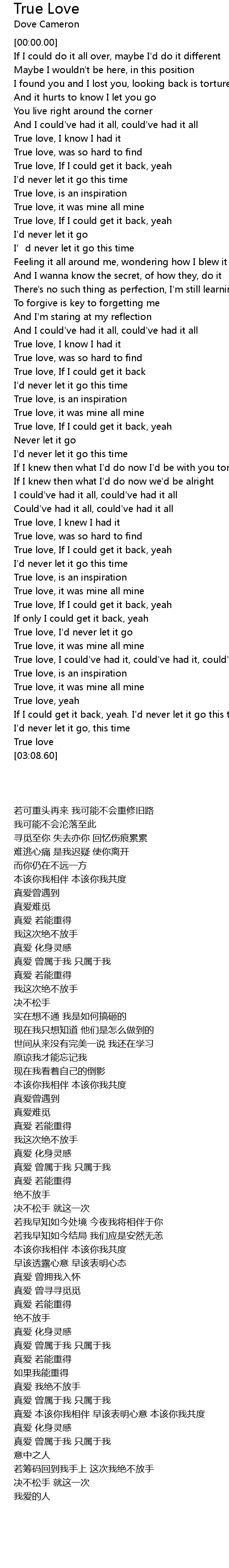 | [00:48.31] | True love, If I could get it back, yeah |