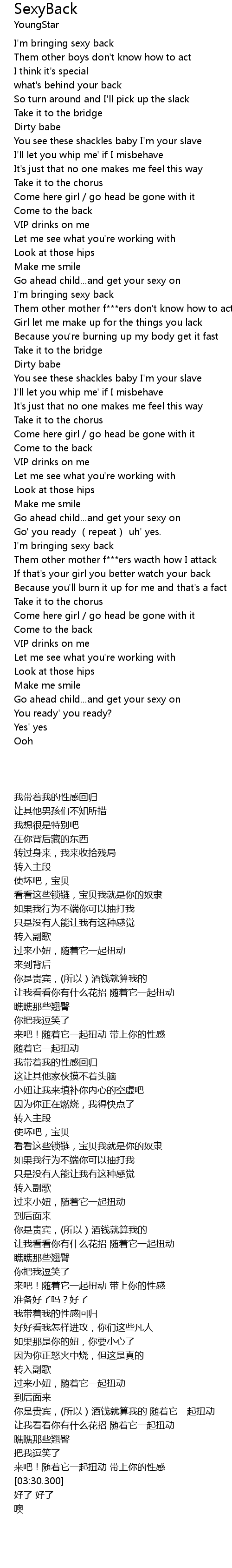 | [01:03.909] | Go ahead child... and get your sexy on |