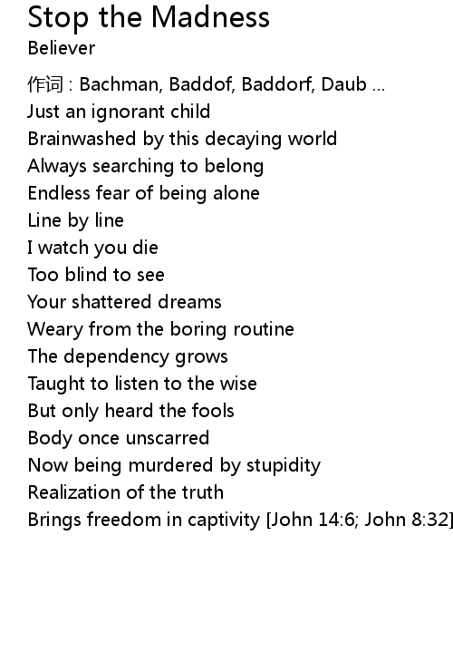 | Song | Stop the Madness |