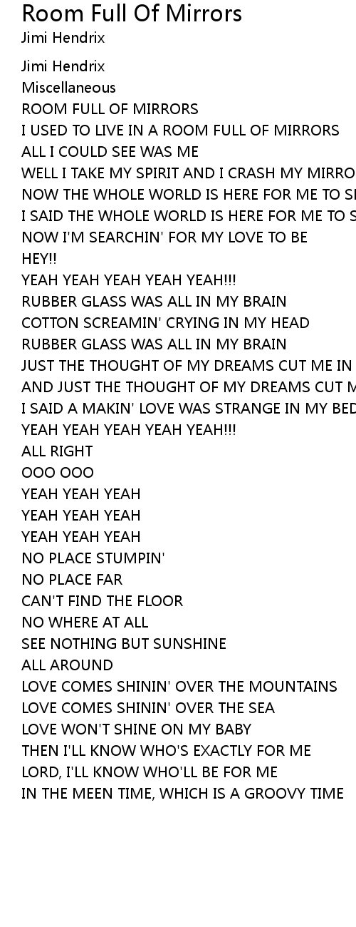 I USED TO LIVE IN A ROOM FULL OF MIRRORS