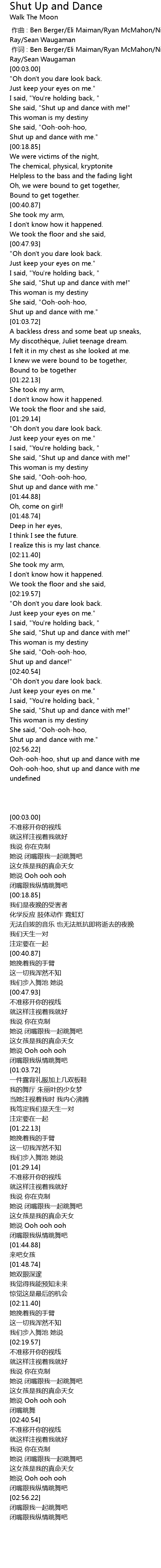 | [00:53.58] | She said, "Shut up and dance with me!" |