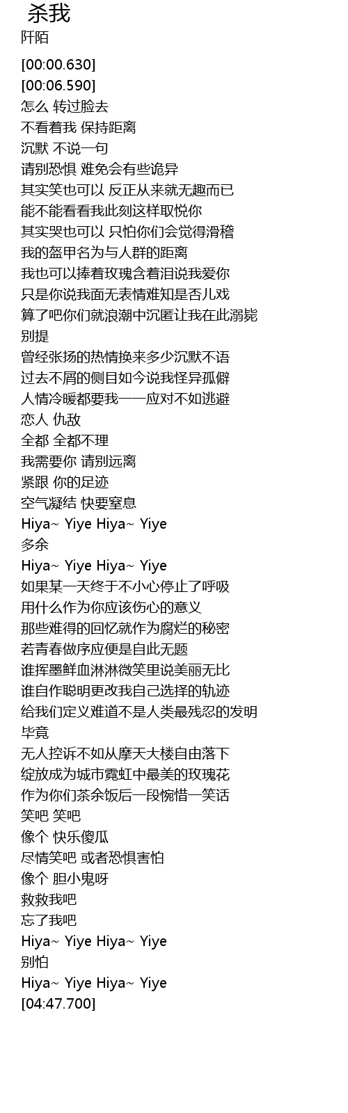 | [04:37.830] | Hiya~ Yiye Hiya~ Yiye |