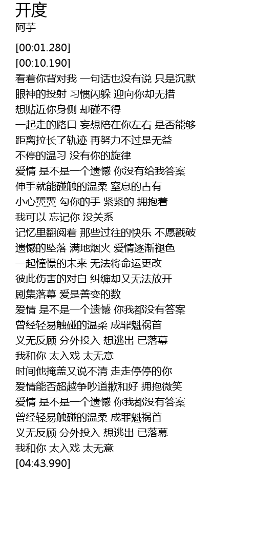 | [04:35.250] | 我和你 太入戏 太无意 |