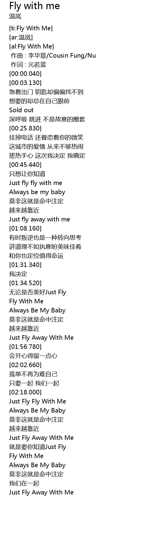 | [02:36.700] | jiù shì yào nǐ zhī dào Just Fly |