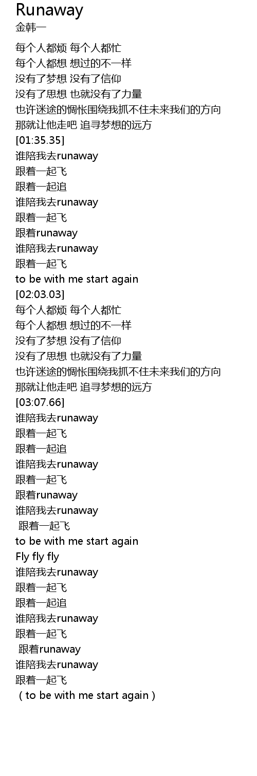 | [01:36.95] | shuí péi wǒ qù runaway |
