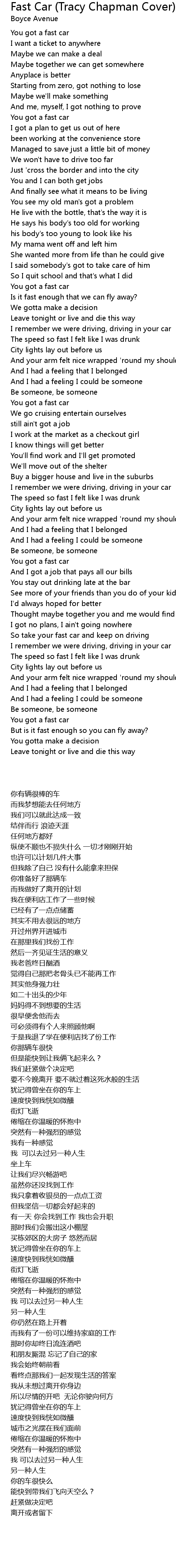You got a fast car |
