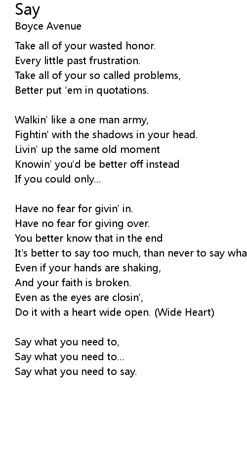 Say what you need to, |