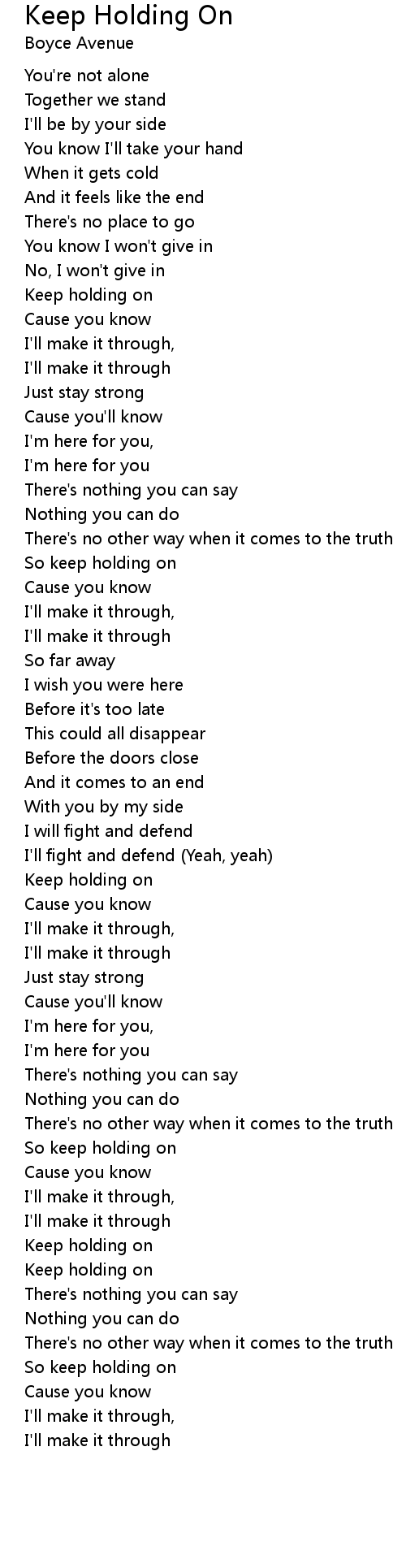 Keep holding on |