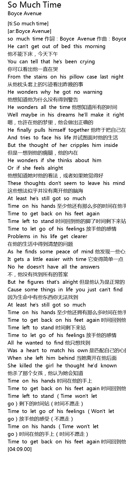| [00:01.656] | so much time zuò cí: Boyce Avenue zuò qǔ: Boyce Avenue |