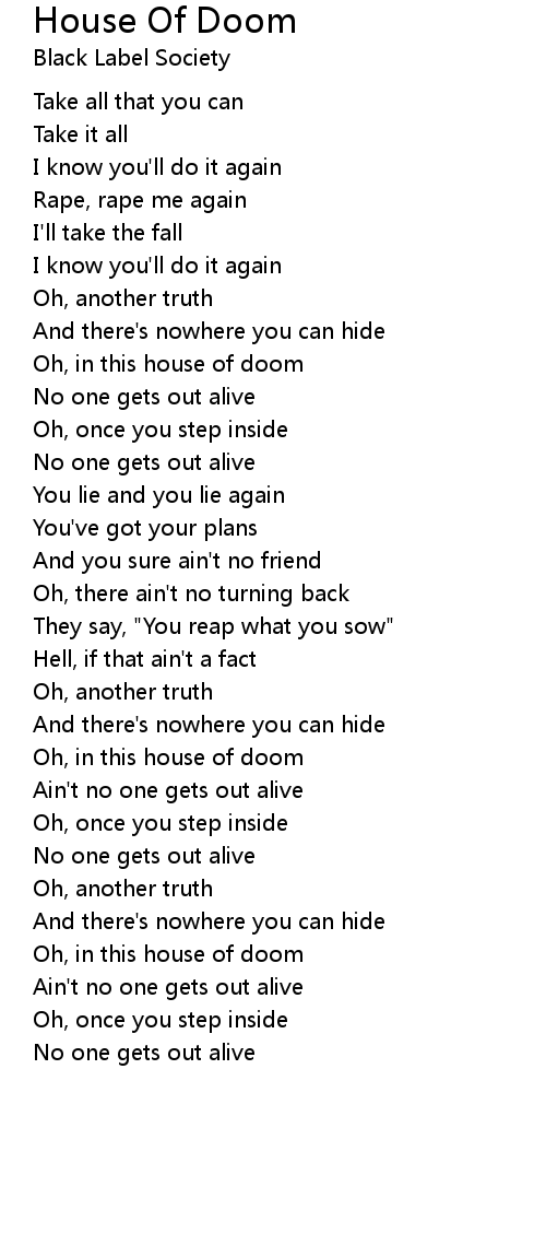 Oh, in this house of doom |