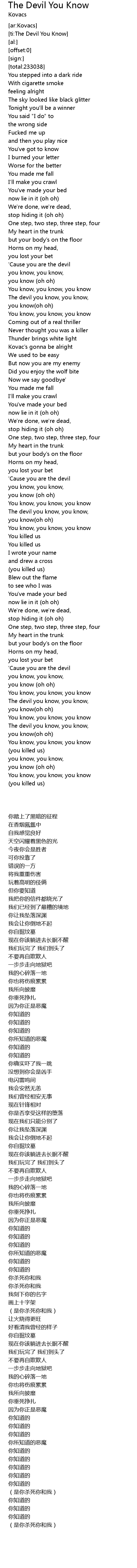 [ti:The Devil You Know] |
