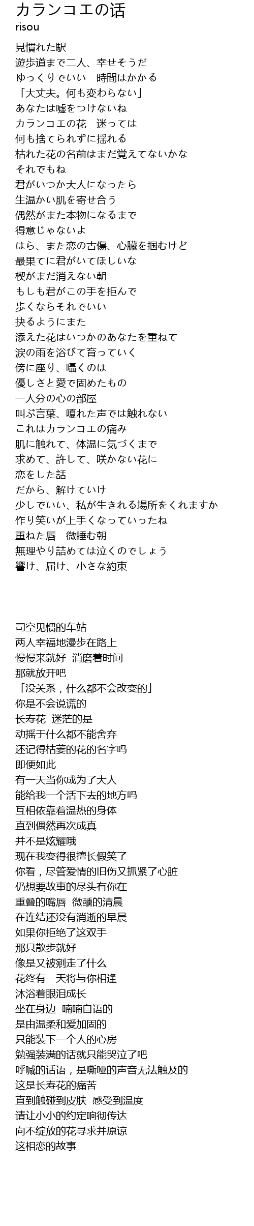 | Song | カランコエの话 |