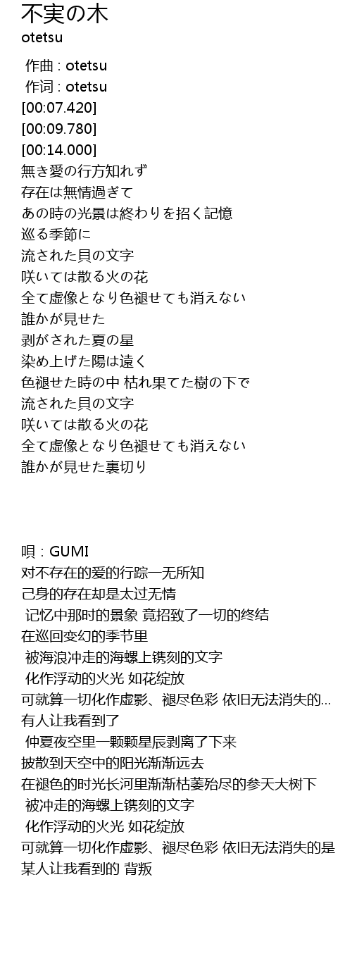 | [00:01.00] | 作词 : otetsu |
