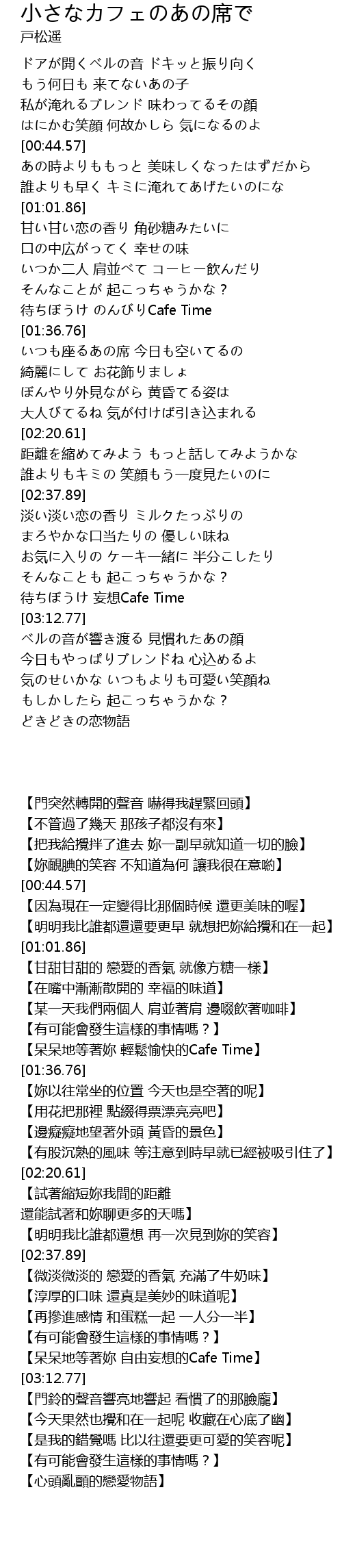 | [03:05.51] | 待ちぼうけ 妄想Cafe Time |