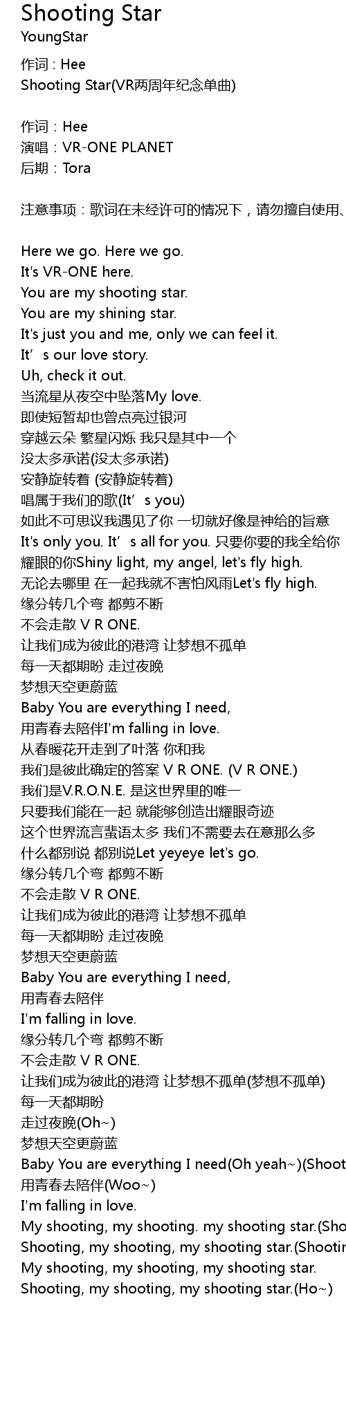 | Shooting Star(VR两周年纪念单曲) | |
