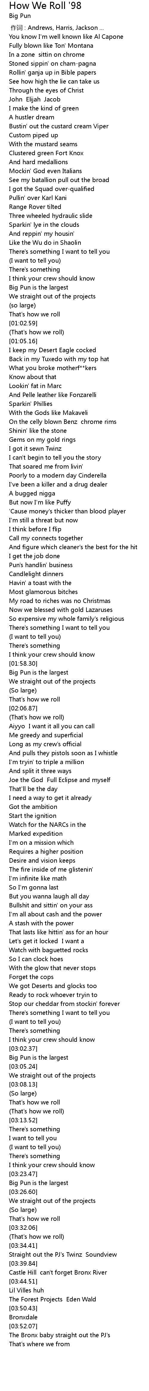 | [00:18.57] | Rollin' ganja up in Bible papers |