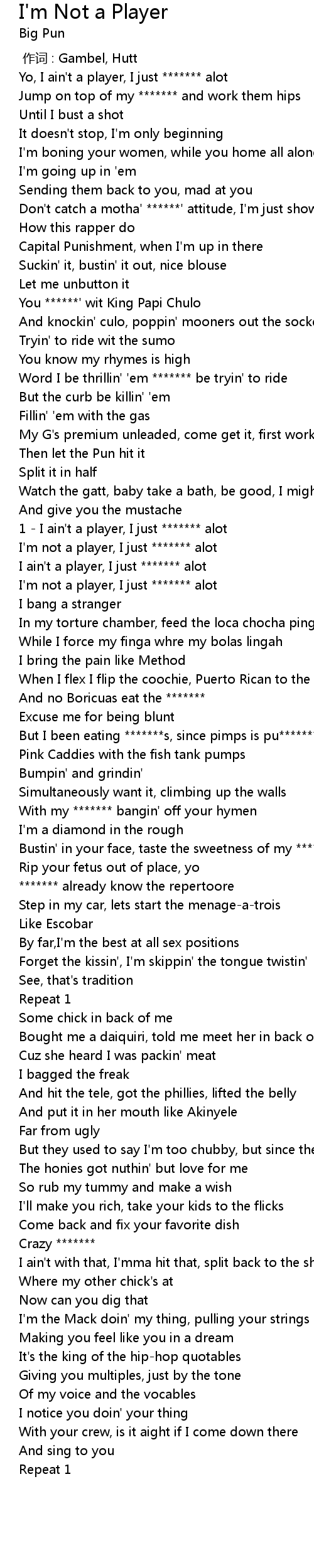 | [01:19.25] | I'm not a player, I just ******* alot |