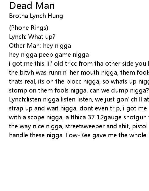 | Lynch:listen nigga listen listen, we just gon' chill at the crib, we just gon' strap up and wait nigga, dont even trip, i got me a 9mm, 44, AR15, 30ought six with a scope nigga, a Ithica 37 12gauge shotgun with a 5lb. slide nigga, we all the way nice nigga, streetsweeper and shit, pistol grip you know. We finnuh handle these nigga. Low-Kee gave me the whole hook-up nigga. Lets do this. |
