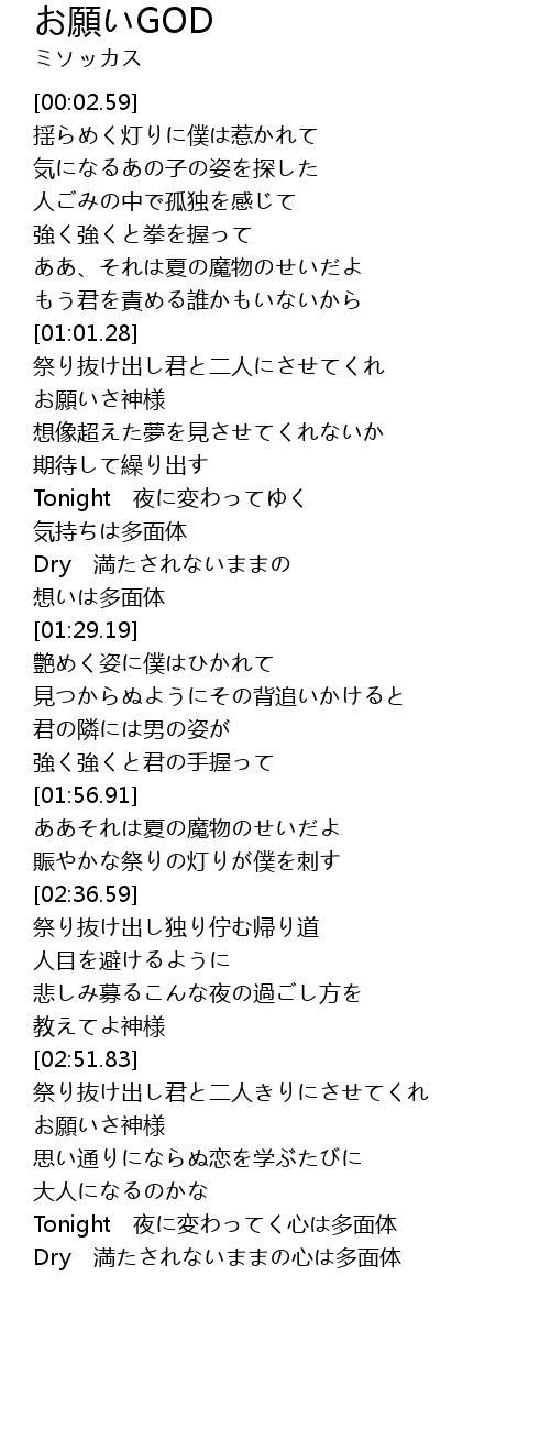 | [02:52.04] | 祭り抜け出し君と二人きりにさせてくれ |