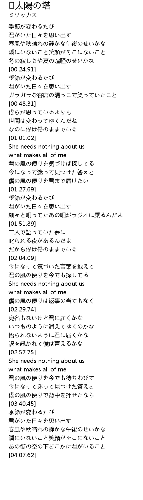 | [03:53.59] | 隣にいないこと笑顔がそこにないこと |