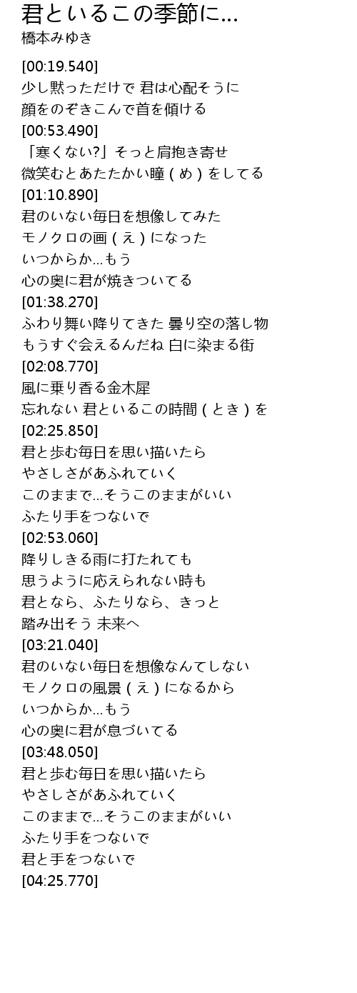 | [04:09.640] | ふたり手をつないで |