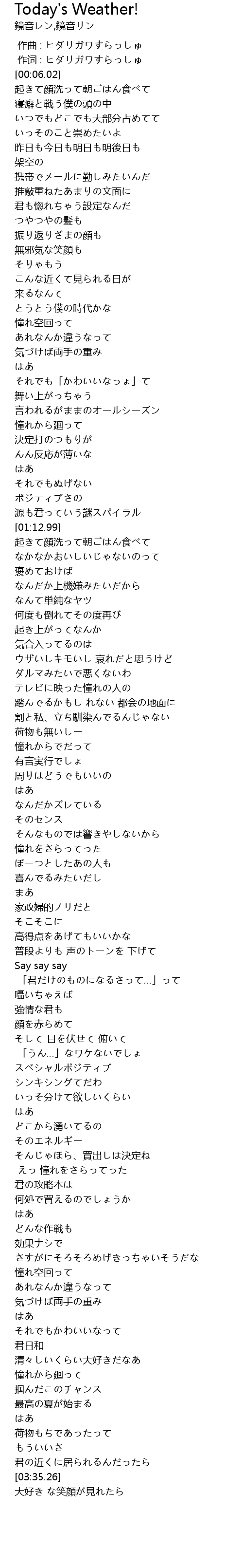 | [01:33.39] | なんだか上機嫌みたいだから |