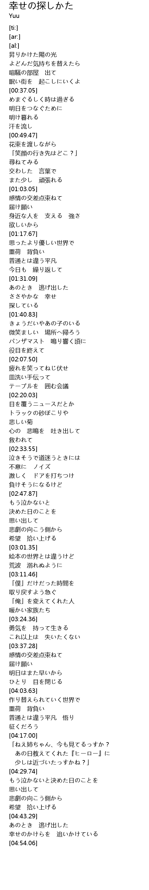 | [01:58.03] | 微笑ましい 場所へ帰ろう |