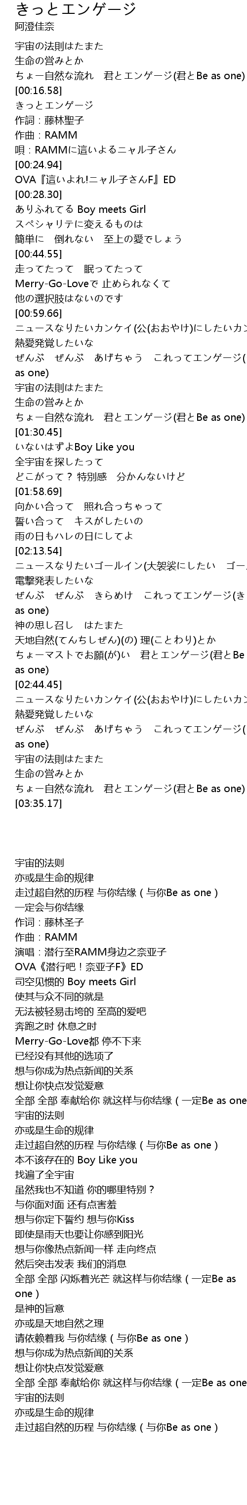 | [03:27.11] | ちょー自然な流れ 君とエンゲージ(君とBe as one) |