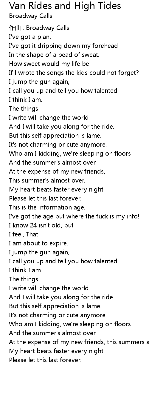 | Song | Van Rides and High Tides |
