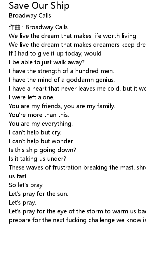 | Song | Save Our Ship |