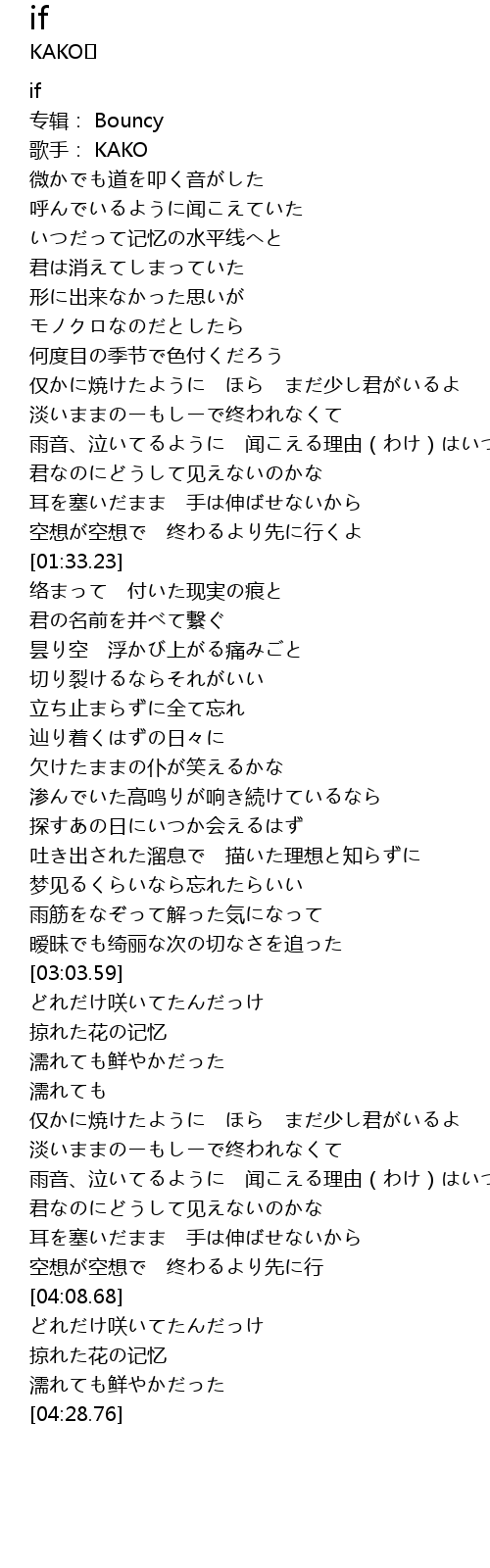 | [04:17.54] | どれだけ咲いてたんだっけ |