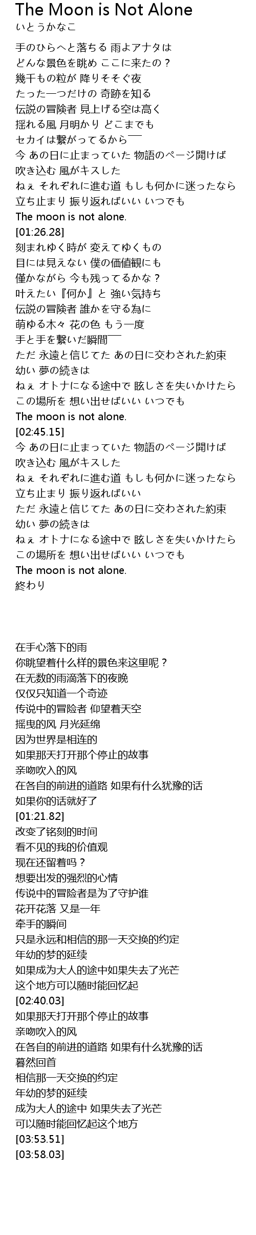 | [03:53.51] | The moon is not alone. |