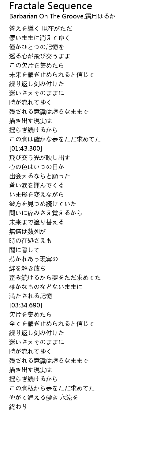 | [01:20.490] | 残される意識は虚ろなままで |