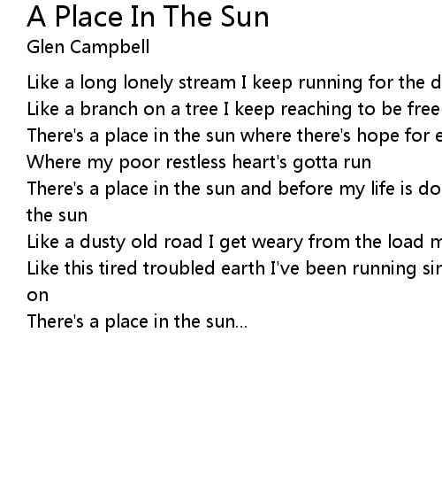 There's a place in the sun and before my life is done gotta find me a place in the sun |