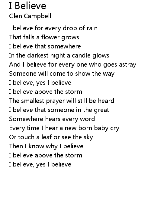 | I believe for every drop of rain | |