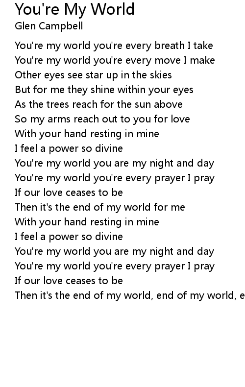 You're my world you're every breath I take |