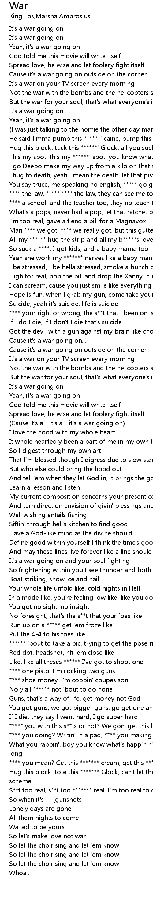 | [02:23.59] | (Cause it's a... it's a... it's a war going on) |