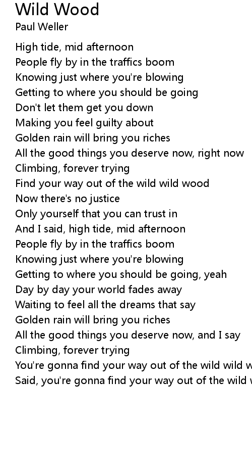 Said, you're gonna find your way out of the wild wild wood |