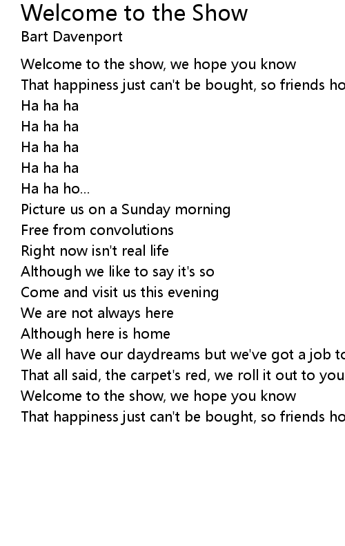 Welcome to the show, we hope you know |