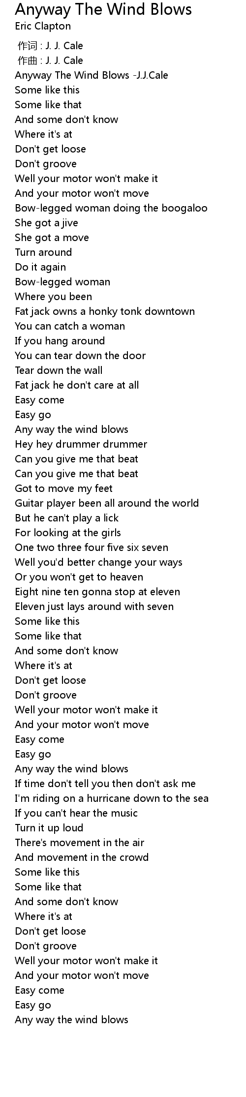 | [00:00.000] | 作词 : J. J. Cale |