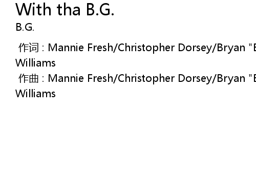 | [00:00.000] | zuò qǔ : Mannie Fresh Christopher Dorsey Bryan " Baby Birdman" Williams |