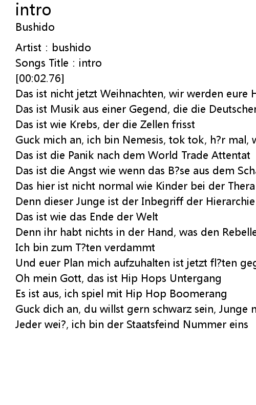| [00:01.57] | Artist: bushido |