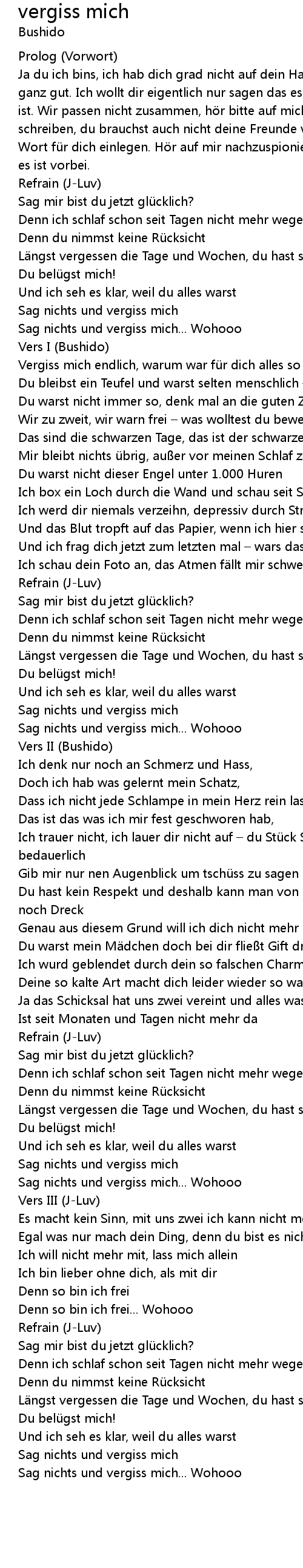 | Sag nichts und vergiss mich... Wohooo |