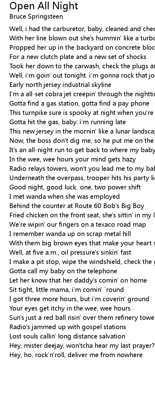 Well, at five a.m., oil pressure's sinkin' fast |
