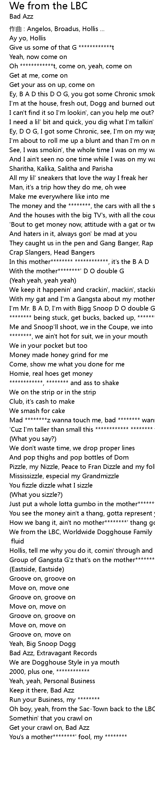 | Group of Gangsta G'z that's on the mother********' LBC | |